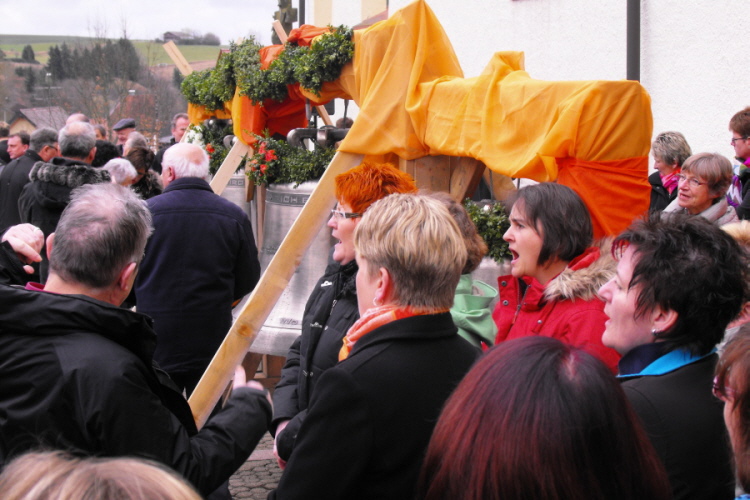 Margit singt beim Kirchenchor, welcher in der Menge untergeht.